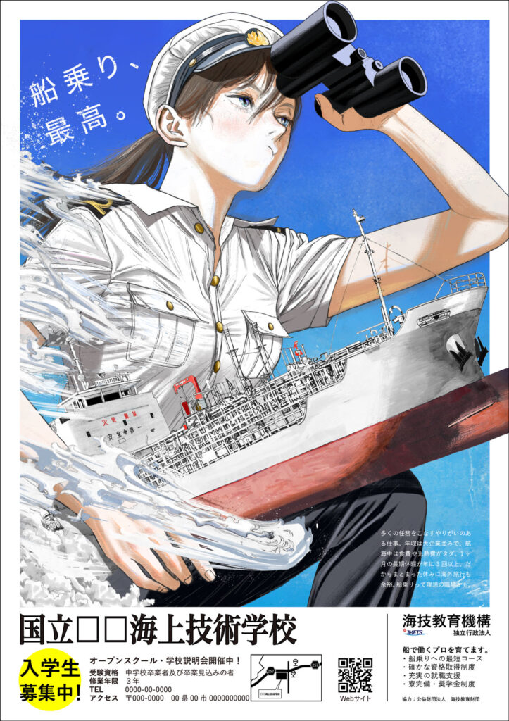 ・将来に希望を持つ若い世代に刺さるような、前向きな言葉を選びました。船乗りにしか見ることのできない景色があるという意味を込めました。
